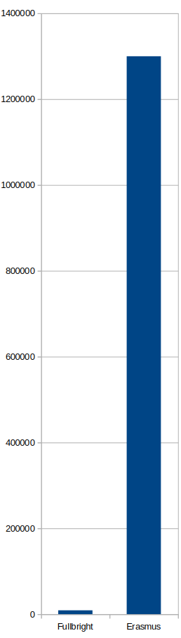 The second-largest comparable programme, the Fulbright in the United States, sends around nine thousand students abroad each year. Erasmus sends 1.3 million.
