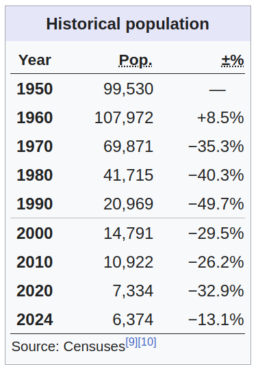 And it’s not all straightforward. Consider water pipes. Abandoned houses are photogenic. It’s the first image that comes to mind when you picture a shrinking city. But as the population declines, ever fewer people live in the same housing stock and water consumption declines. The water sits in oversized pipes. It stagnates and chlorine dissipates. Bacteria move in, creating health risks. You can tear down an abandoned house in a week. But you cannot easily downsize a city’s pipe network. The infrastructure is buried under streets and buildings. The cost of ripping it out and replacing it with smaller pipes would bankrupt a city that is already bleeding residents and tax revenue. As the population shrinks, problems like this become ubiquitous.